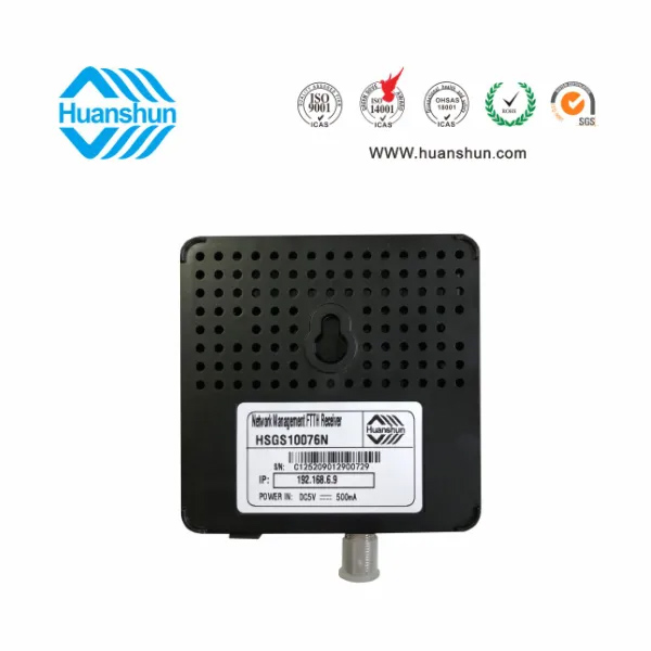 環順的HSGS10076DN光接收機是專為CATV網絡的FTTH應用而設計的入戶型光接收機。具有結構小巧緊湊、式樣美觀、應用方便等特點,在高達1000Mhz的帶寬下能夠提供穩定的輸出電平和優異的性能指標,具有極寬的光功率工作范圍。