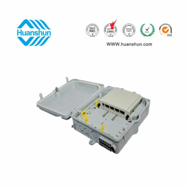 HSGFKSN-8/12/16/24光纜分纖箱采用ABS工程塑料制作,外觀免噴漆,光澤度好,使用壽命達到15年以上。本產品符合YD/T2150-2010光纜分纖箱標準要求,適用于FTTH接入系統從分前端到終端環節中任何光信號中繼、光纜分纖和配置光分路等,集熔接、分光、配線于一體,室內野外環境下均可使用。